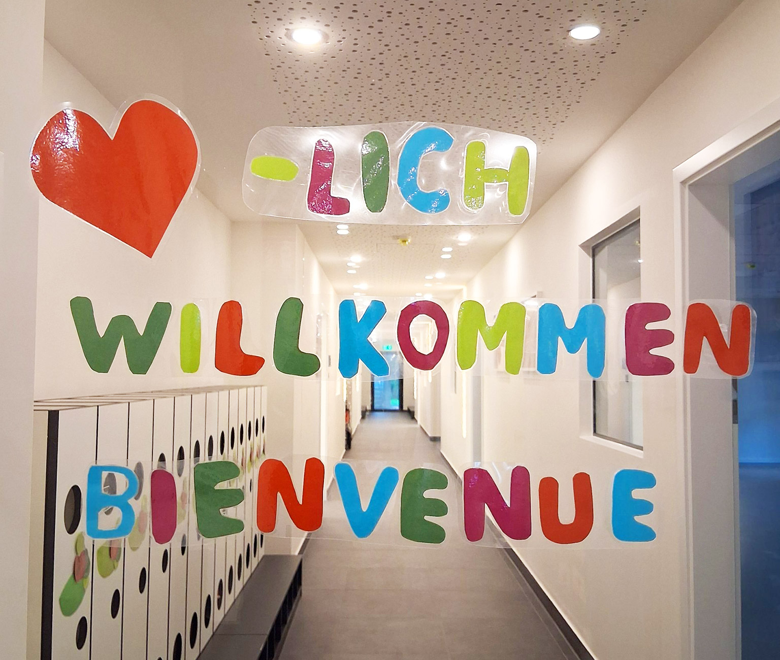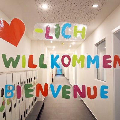 Die Kita befindet sich in einem großzügigen Neubau im Augsburger Stadtteil Lechhausen. Über 3 Etagen bietet die deutsch-französische Einrichtung beste Voraussetzungen für eine liebevolle und lernanregende Betreuung der Kinder. Deckenhohe Fenster lassen den Eingangsbereich sowie die fröhlich und kindgerecht gestalteten Gruppenräume hell und freundlich erstrahlen.