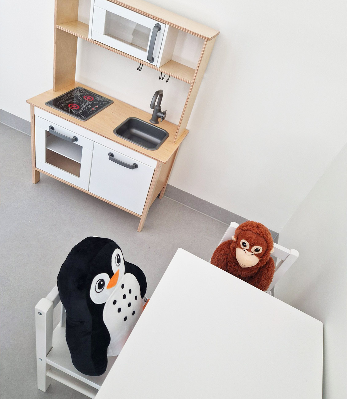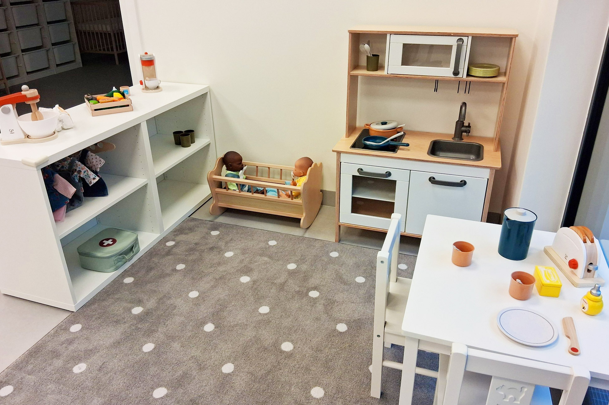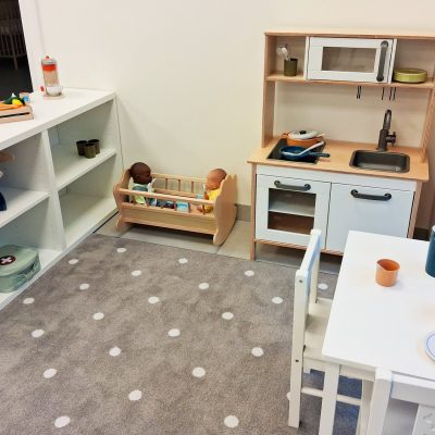Die Räume sind den unterschiedlichen Bedürfnissen der beiden Altersgruppen angepasst und in anregende Lernbereiche unterteilt. Liebevoll gestaltete Ruheräume bieten jedem Kind einen gemütlichen Schlafplatz und außerhalb der Ruhezeiten viel Platz für gemeinsames Spielen und Singen.