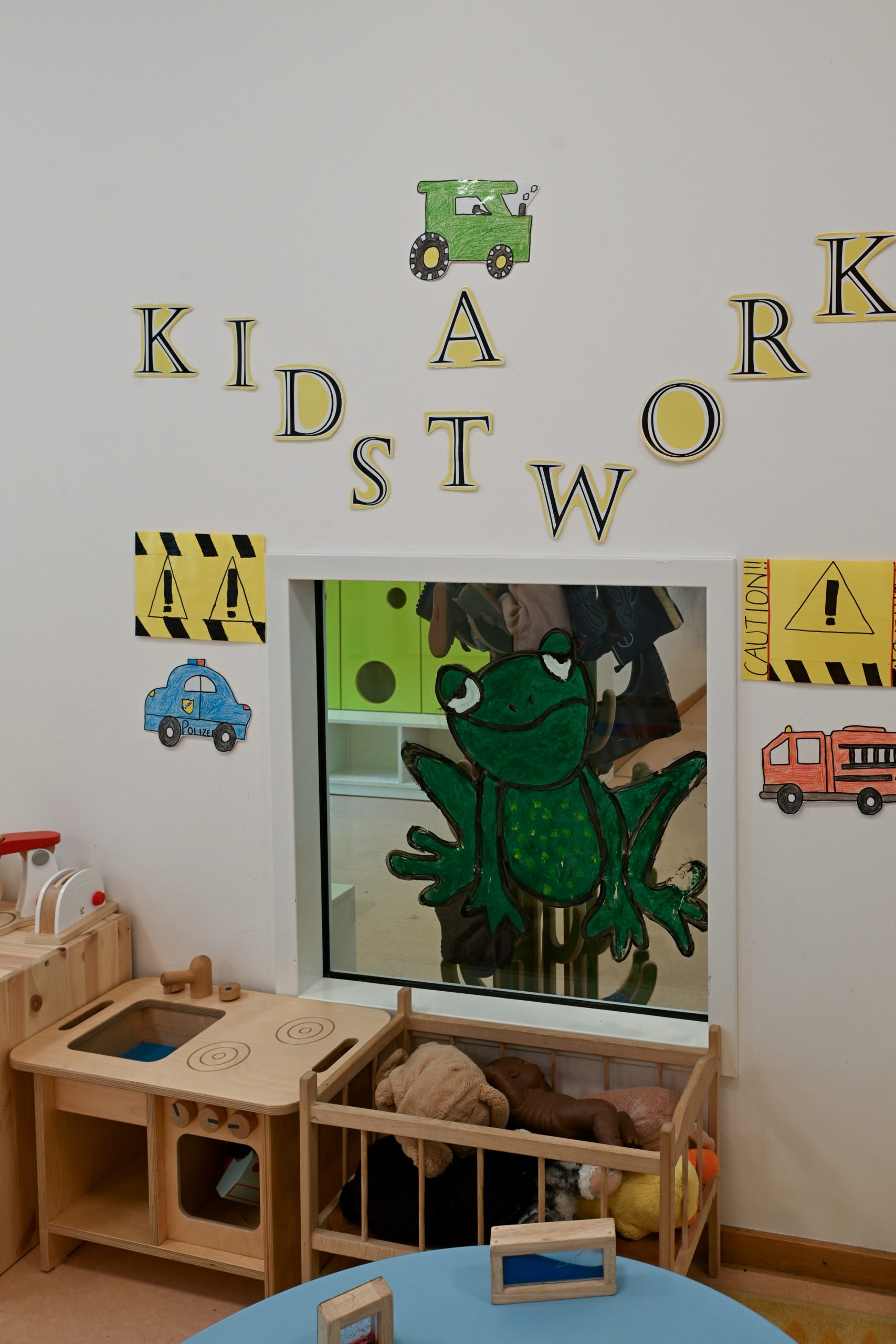 Die Räumlichkeiten der Einrichtung sind den unterschiedlichen Bedürfnissen der beiden Altersgruppen angepasst und in anregende Lernbereiche unterteilt. Die Kinder jeder Gruppe haben eine feste Bezugsperson, durch die Aufteilung der Räume wird jedoch ein teiloffenes Konzept ermöglicht. D.h. die Kinder können während des Alltags teiloffene Angebote der Einrichtung in den verschiedenen Räumen wahrnehmen.