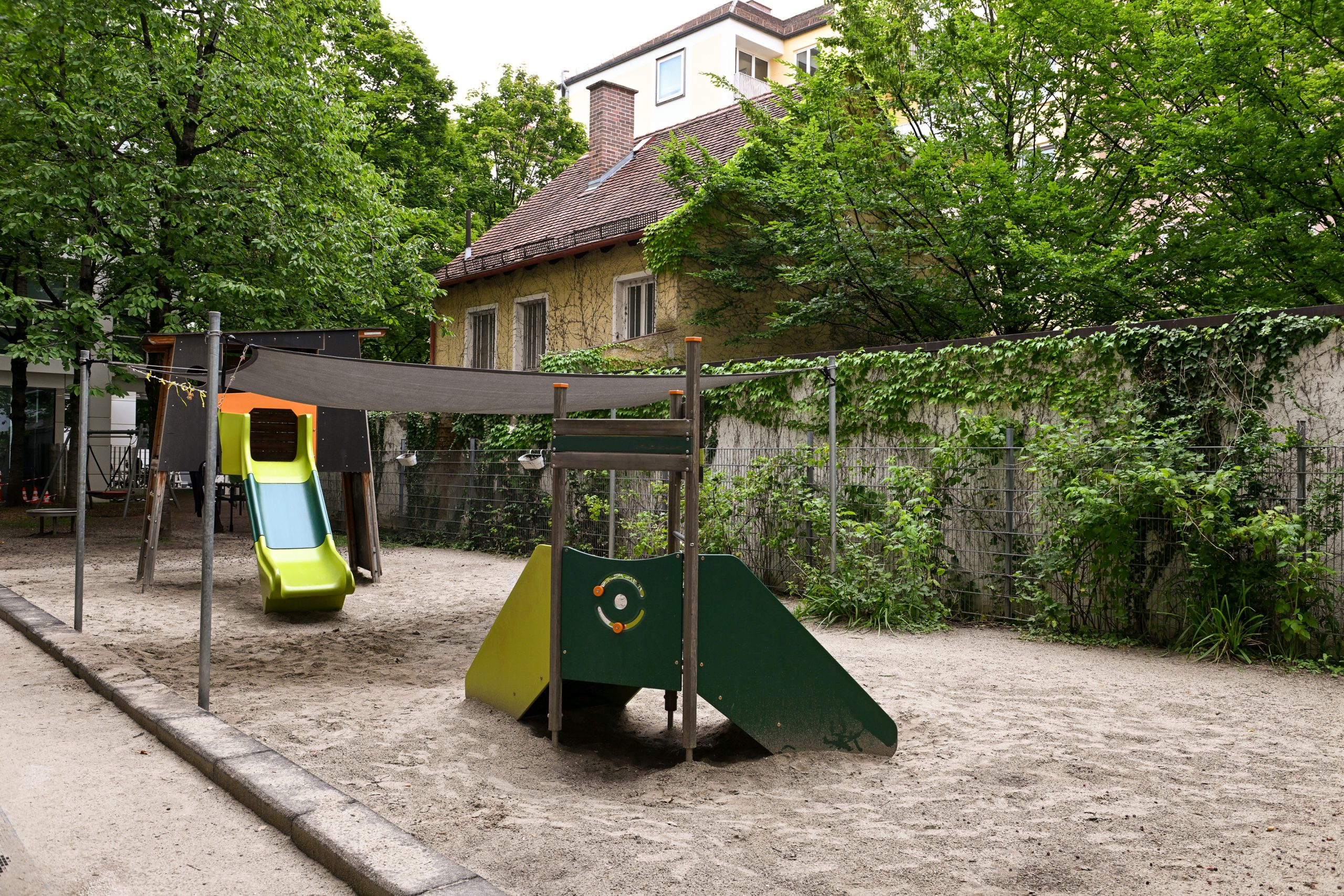 Die Gruppenräume bieten einen direkten Zugang zum schönen hauseigenen Außenbereich, so dass die Kinder in der Freispielzeit flexibel an der frischen Luft spielen, forschen und sich bewegen können. Um den Umgang mit der Natur erlernen und erfahren zu können, steht ihnen ein Hochbeet zur Verfügung, in dem die Kinder Pflanzen ansäen, pflegen und ernten können.
