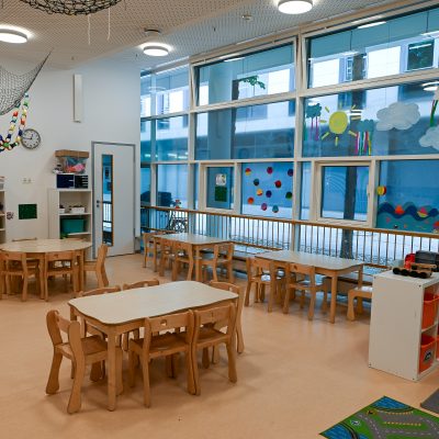 Als Betriebs-Kita stehen die 52 Krippen- und Kindergartenplätze vorrangig den Kindern der Siemens-MitarbeiterInnen zur Verfügung.